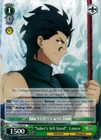 "Saber's left hand", Lancer (FZ/S17-E035S SR) [Fate/Zero]$3.00Release Date: 2012-06-30 Set Name: Fate/Zero Card Number: FZ/S17-E035S SR Ra...