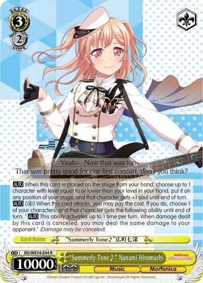 "Summerly Tone" Nanami Hiromachi (BD/WE34-E04 R) [Morfonica x RAISE A SUILEN]$0.30Release Date: 2022-01-21 Set Name: Morfonica x RAISE A SUILEN Card Number: BD/WE34-E04 R ...