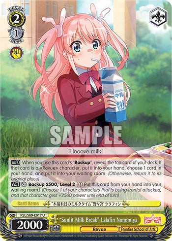 "Sunlit Milk Break" Lalafin Nonomiya [Revue Starlight -Re LIVE-]$0.20Release Date: 2023-07-07 Set Name: Revue Starlight -Re LIVE- Card Number: RSL/S69-E017 U ...