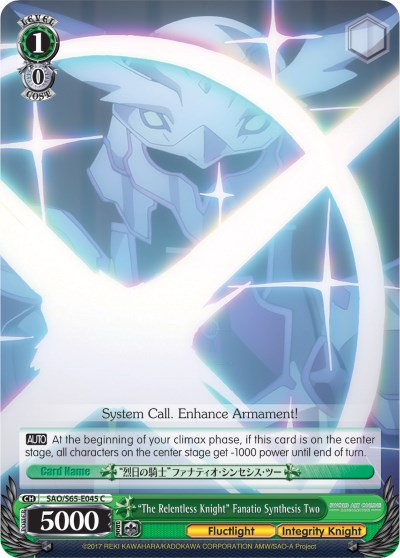 "The Relentless Knight" Fanatio Synthesis Two (SAO/S65-E045 C) [Sword Art Online -Alicization-]$0.20Release Date: 2020-02-28 Set Name: Sword Art Online -Alicization- Card Number: SAO/S65-E045 C ...