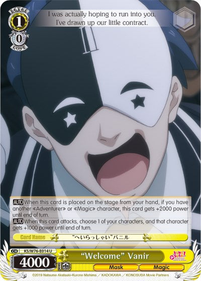 "Welcome" Vanir (KS/W76-E014 U) [KonoSuba The Movie: Legend of Crimson]$0.20Release Date: 2020-10-23 Set Name: KonoSuba The Movie: Legend of Crimson Card Number: KS/W76-E014 U ...